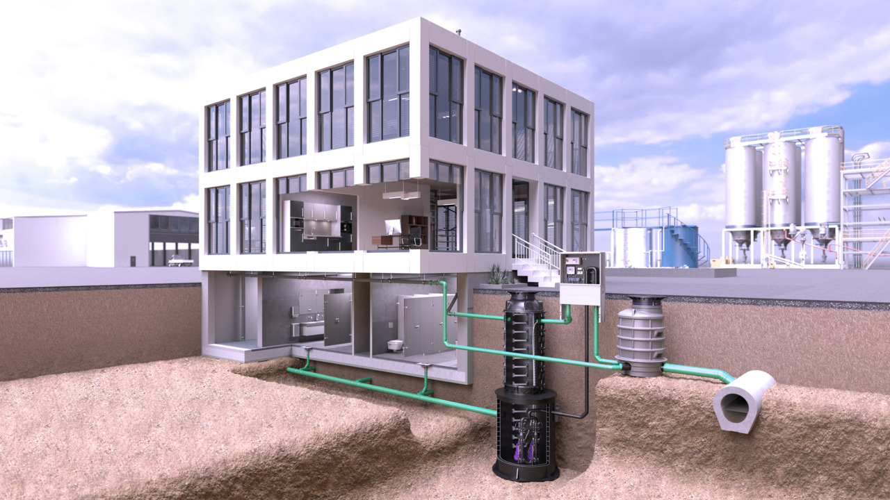 Dankzij de modulaire bouw met een uitgebreide keuze aan schachtmodules en opzetstukken kan het pompstation zowel ondergronds als in een betonplaat worden ingebouwd. Onze standaardconforme techniekschachten zijn tot drie meter grondwaterbestendig en kunnen tot een hoogte van vijf meter modulair worden opgebouwd.