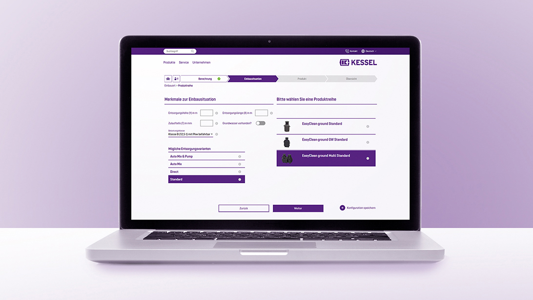 - Interactieve productselectie op basis van inbouwlocatie, afwateringstechnieken en toebehoren.