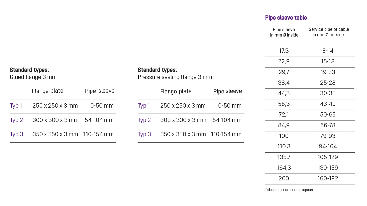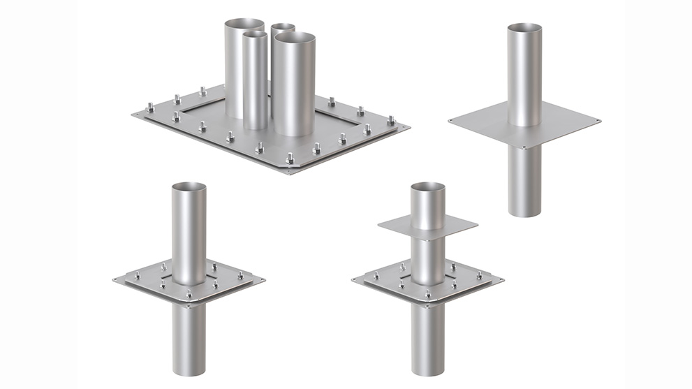 Er is keuze uit ronde en rechthoekige buisdoorvoeren die met een flensplaat kunnen worden gecombineerd.