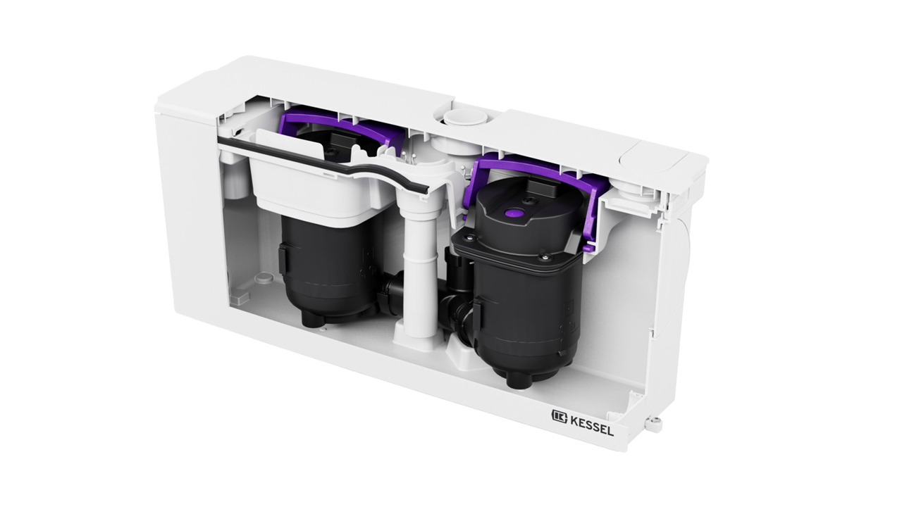 De Minilift WC L duo is de enige kleine opvoerinstallatie die is uitgerust met twee onafhankelijk van elkaar werkende pompen. Als een van beide uitvalt, neemt de andere het werk over. Dit garandeert een ononderbroken werking, zelfs bij een storing of reparatie.